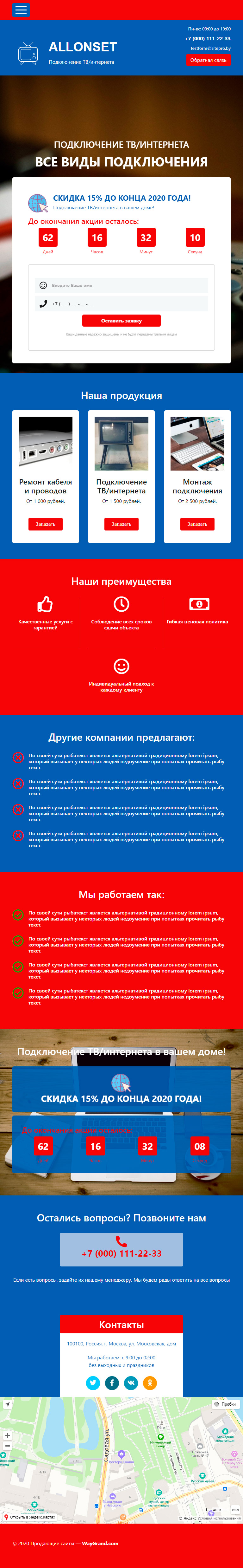 Закажите готовый продающий сайт лендинг #0718201 в Орске за 1-3 дня «под ключ»: свёрстан, отрисован и готов к рекламе. Тематика шаблона «Подключение ТВ/интернета».