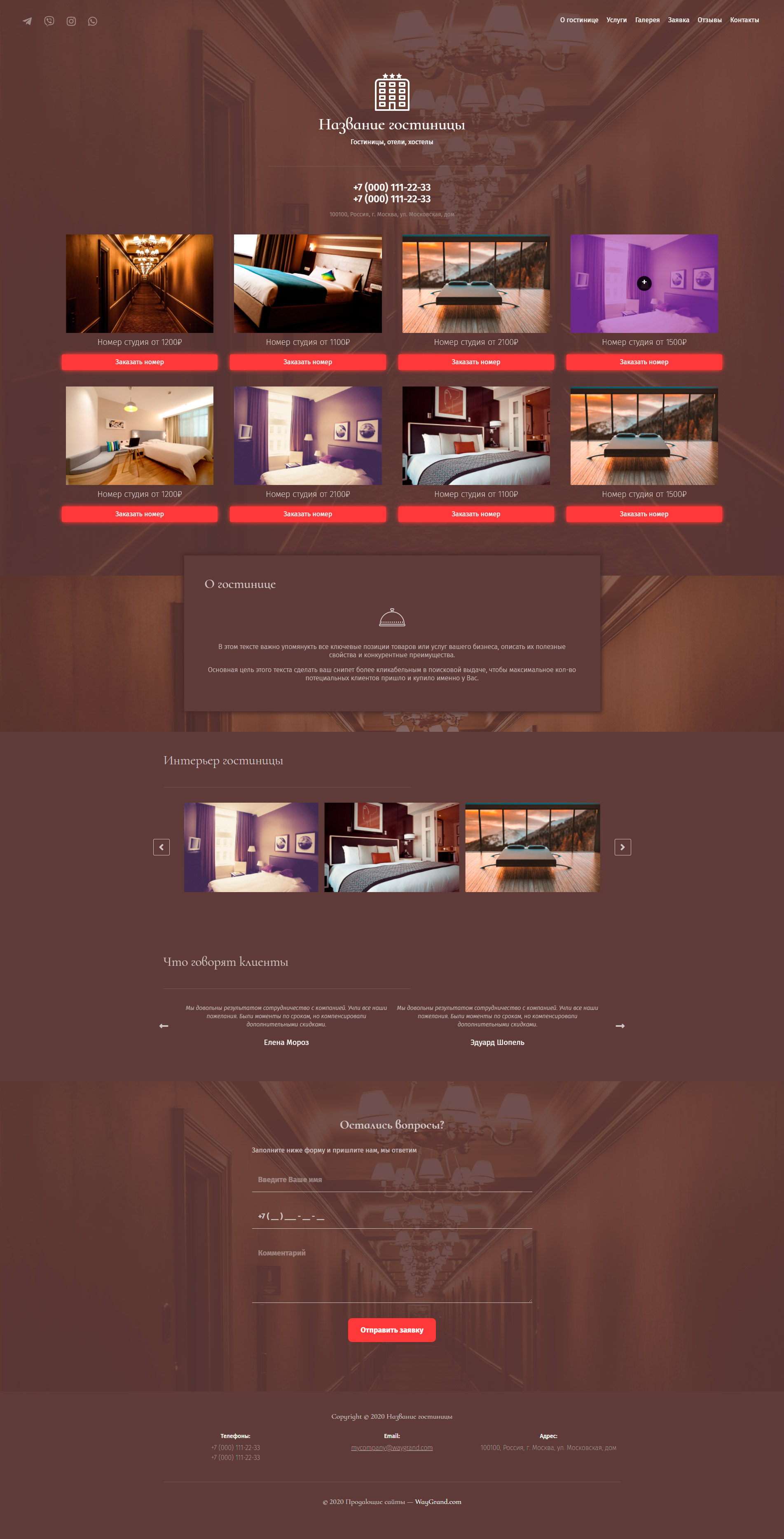 Закажите готовый продающий сайт лендинг #1905202 в Орске за 1-3 дня «под ключ»: свёрстан, отрисован и готов к рекламе. Тематика шаблона «Гостиница, повышенный комфорт».